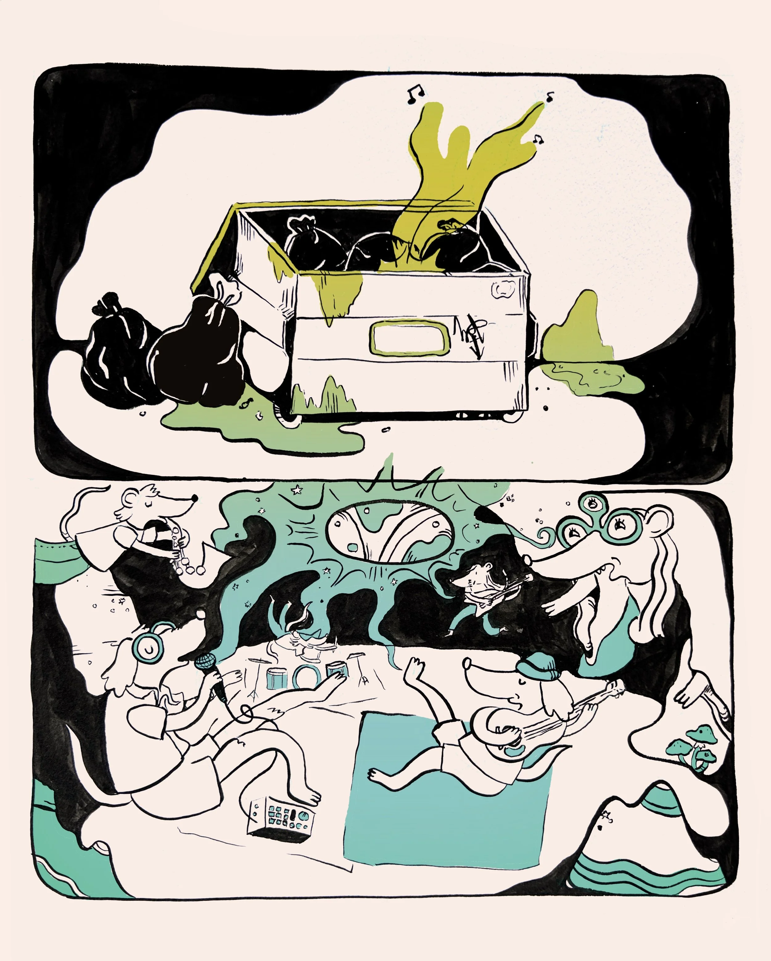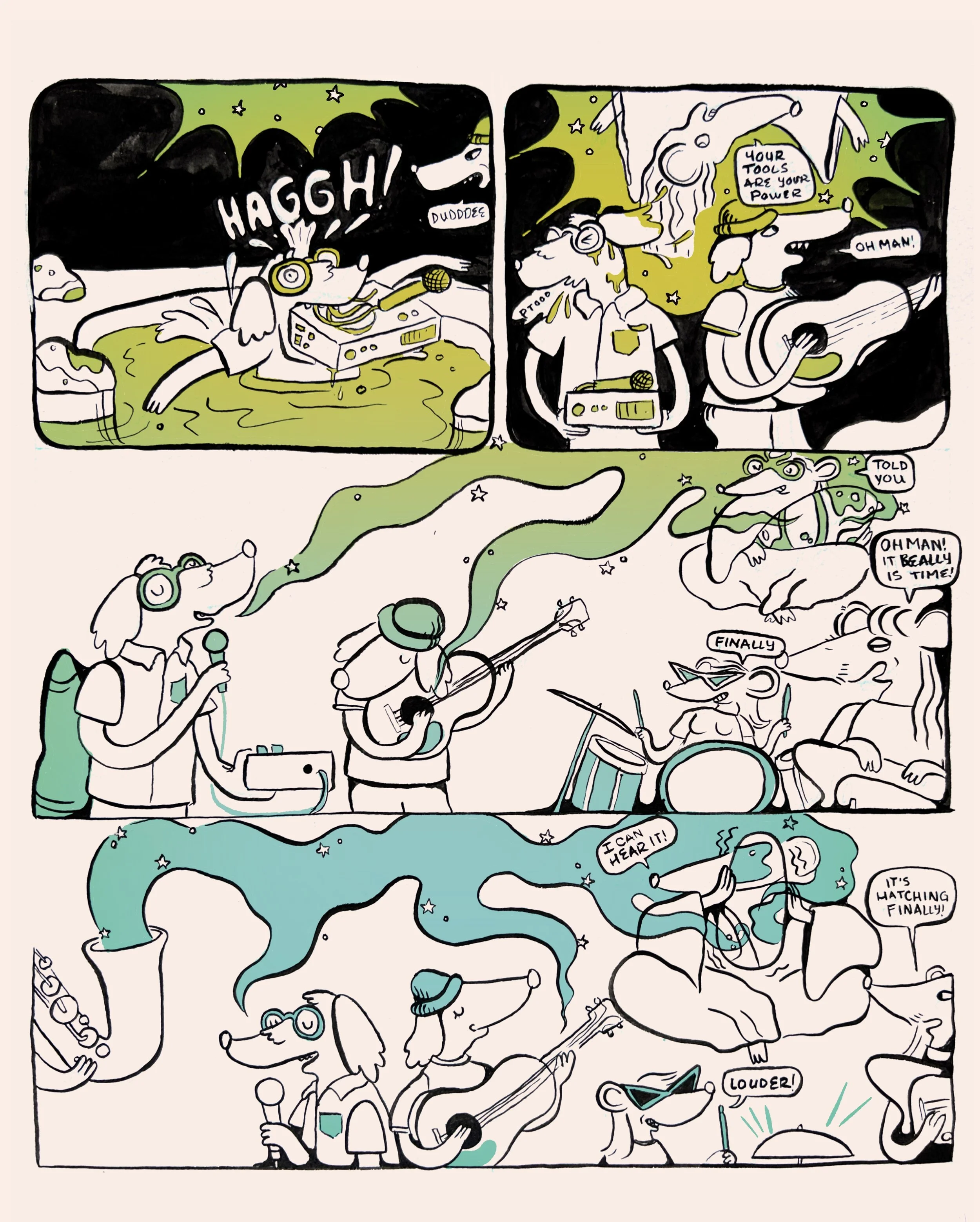 My friend Levon of Santa Barbra, Levon made some rad music. I ended up drawing him a set of drawings / icons to go with the music. Then I drew a happy dog and then a whole WIM comic. Join us on the journey and visit Levon’s Project HERE!